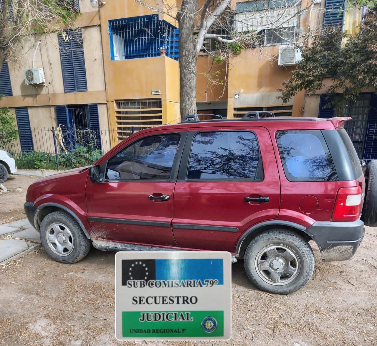 Horas más tarde, en el estacionamiento de las 400 Viviendas, personal de la Subcomisaría 79 ubicó una Ford Ecosport denunciada como robada el día anterior en Neuquén. El vehículo fue peritado por Criminalística y puesto a disposición de la fiscalía, a la espera de su restitución al dueño legítimo