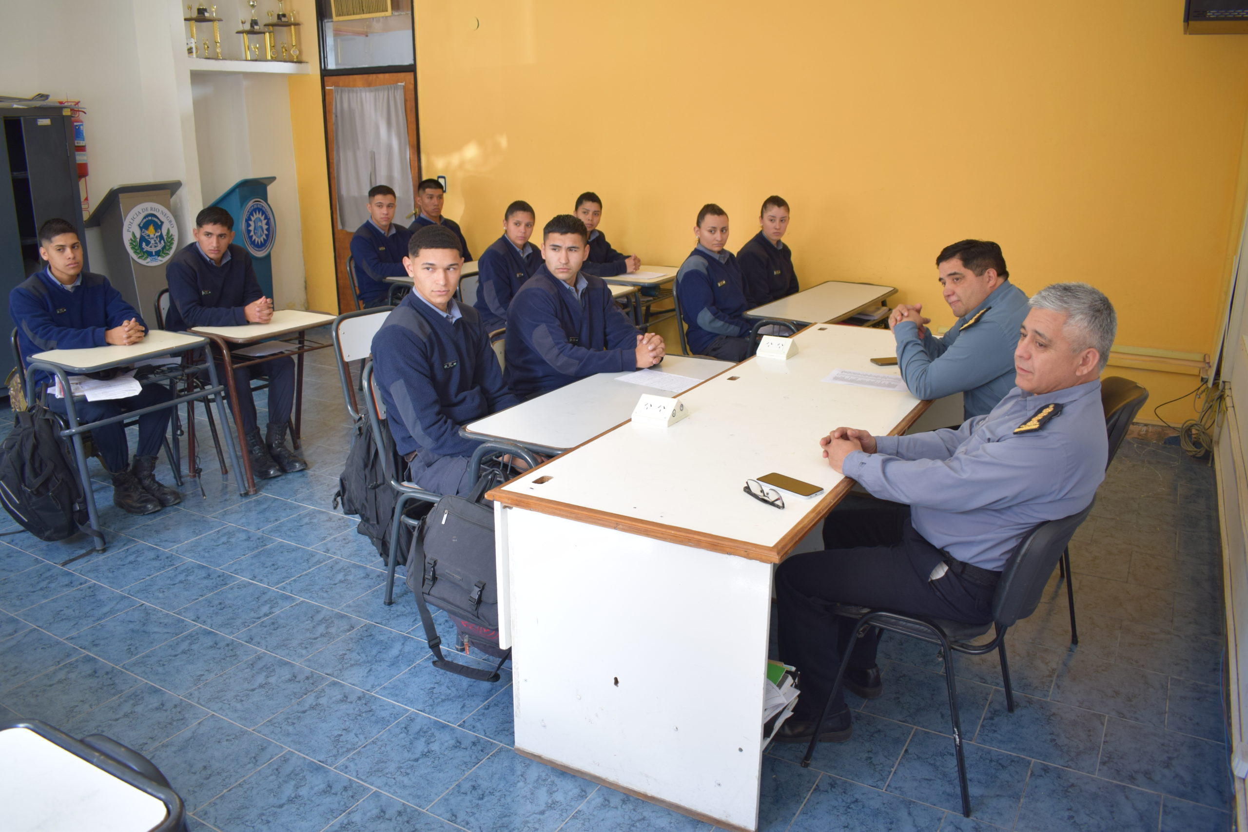 El jefe de la Policía, Comisario Daniel Bertazzo, y el subjefe, Comisario Daniel Tapia, realizaron una visita a los estudiantes de la Escuela de Cadetes de Viedma, con el objetivo de dialogar sobre las aspiraciones, metas y expectativas de los futuros integrantes de la fuerza. Durante el encuentro, se buscó reforzar la vocación de servicio y la importancia del compromiso con la comunidad.