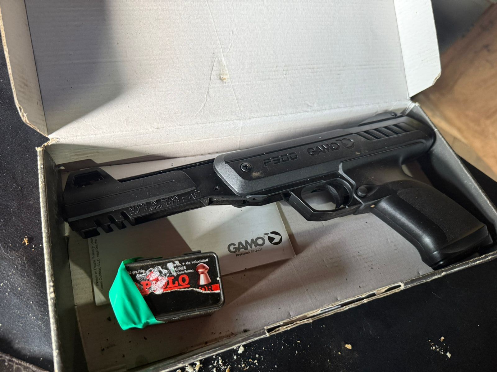 Los uniformados detectaron la réplica del arma, que estaba en su caja, y procedieron al decomiso. Secuestraron además más de 100 balines.