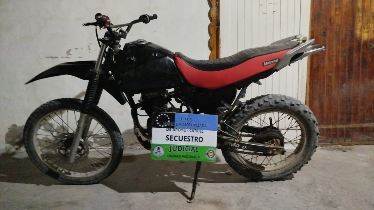 El miércoles por la noche, personal de la Brigada Motorizada de Apoyo (B.M.A.) de la Comisaría 9° de Catriel secuestró una motocicleta que presentaba importantes irregularidades en su documentación y en la numeración del motor.