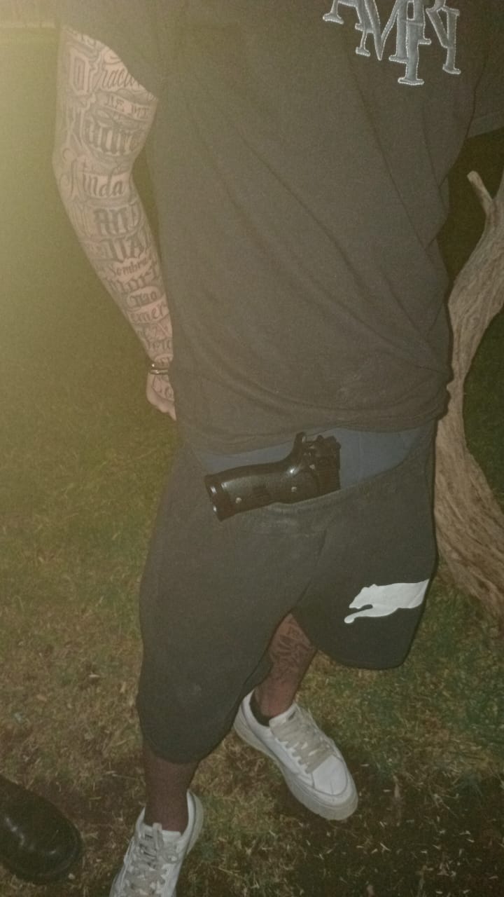 Al arribar al lugar, los efectivos identificaron a dos individuos y constataron que uno de ellos tenía entre sus pertenencias un arma de juguete de balines, similar a una pistola 9 milímetros y de color negra. Ante la consulta, el joven manifestó que la portaba “para defensa personal”.