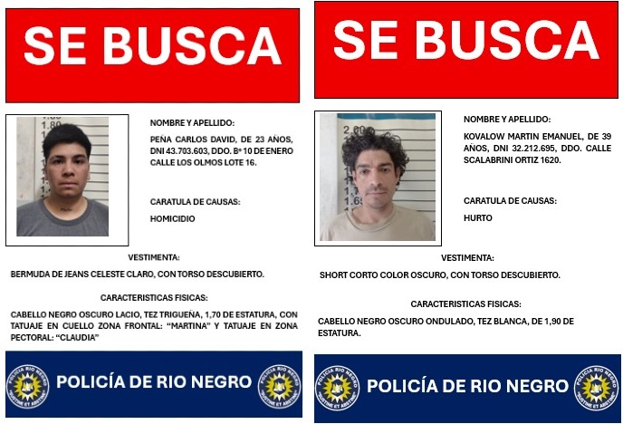 Los prófugos fueron identificados como Carlos David “Peke” Peña (23), imputado por homicidio, y Martín Emanuel Kovalow (29), detenido por hurto.