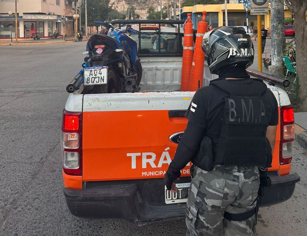 Inspectores municipales de tránsito secuestraron una motocicleta de 230 cc debido a la falta de documentación correspondiente y al resultado positivo en el test de alcoholemia realizado al conductor.