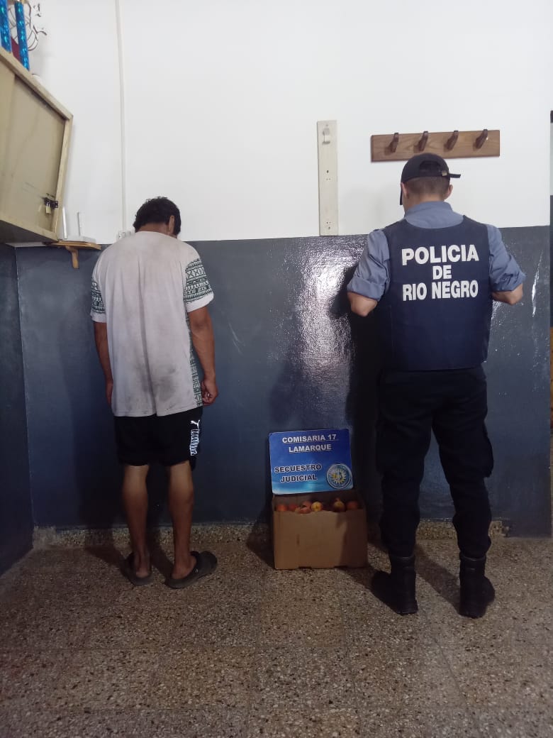 Personal de la Comisaría 17 de Lamarque que actuaba en prevención, demoró – en la mañana del martes – por “averiguación de antecedentes”, a un sujeto que llevaba una caja de frutos de carozo de dudosa procedencia.