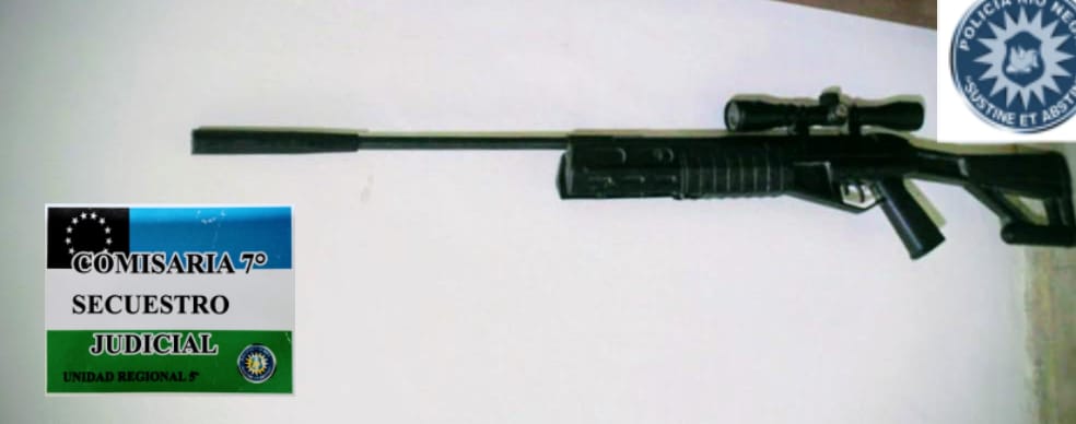 La medida judicial arrojó resultados positivos, procediéndose al secuestro de un arma tipo rifle de aire comprimido calibre 4,5 mm con mira telescópica, además de frascos con balines de plomo y prendas de vestir vinculadas a la causa.