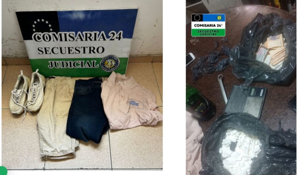 También, se realizó otro allanamiento en el barrio La Paz, que permitió el secuestro de prendas de vestir y calzado, además del hallazgo de una balanza de precisión y Clorhidrato de Cocaína, según el narcotest realizado por personal de Toxicomanía.