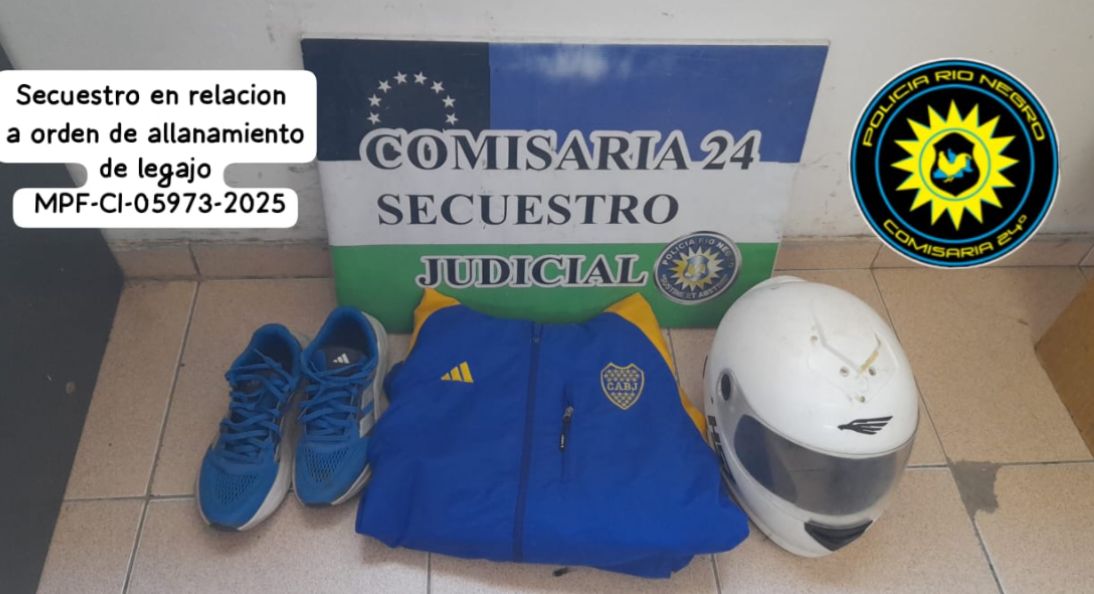 Por otra parte, personal de la Comisaría 24° concretó un allanamiento en el marco de una causa por robo. La diligencia se llevó a cabo en un domicilio ubicado en la calle Antonio Turrin, donde se secuestraron una campera, un casco para motocicleta y un par de zapatillas.