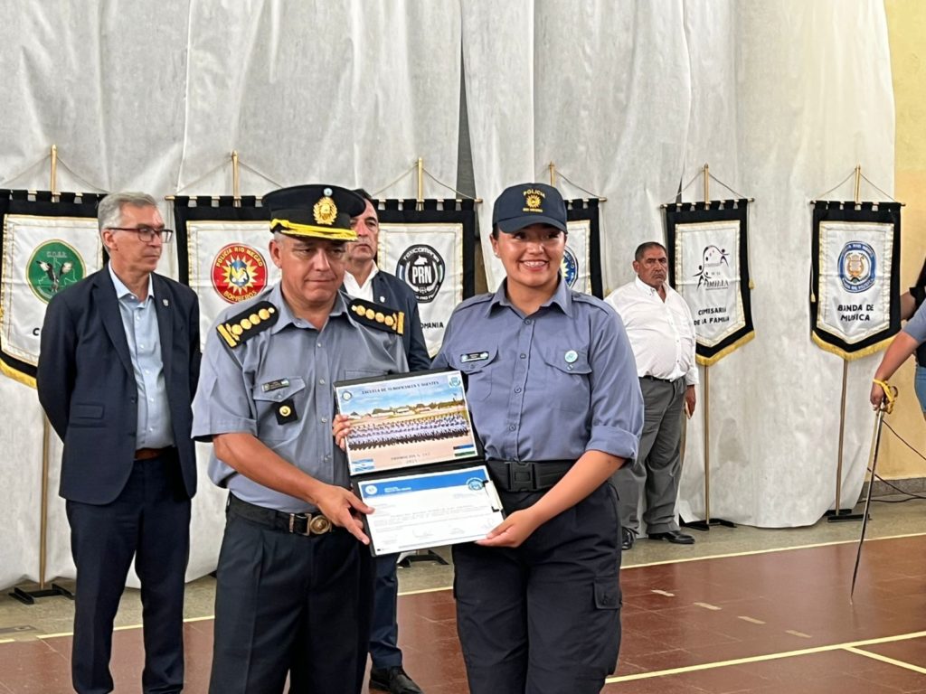 Durante la jornada se puso en valor el esfuerzo de los flamantes suboficiales, quienes culminaron su formación profesional y comenzarán a desempeñarse en distintas unidades policiales del territorio rionegrino.