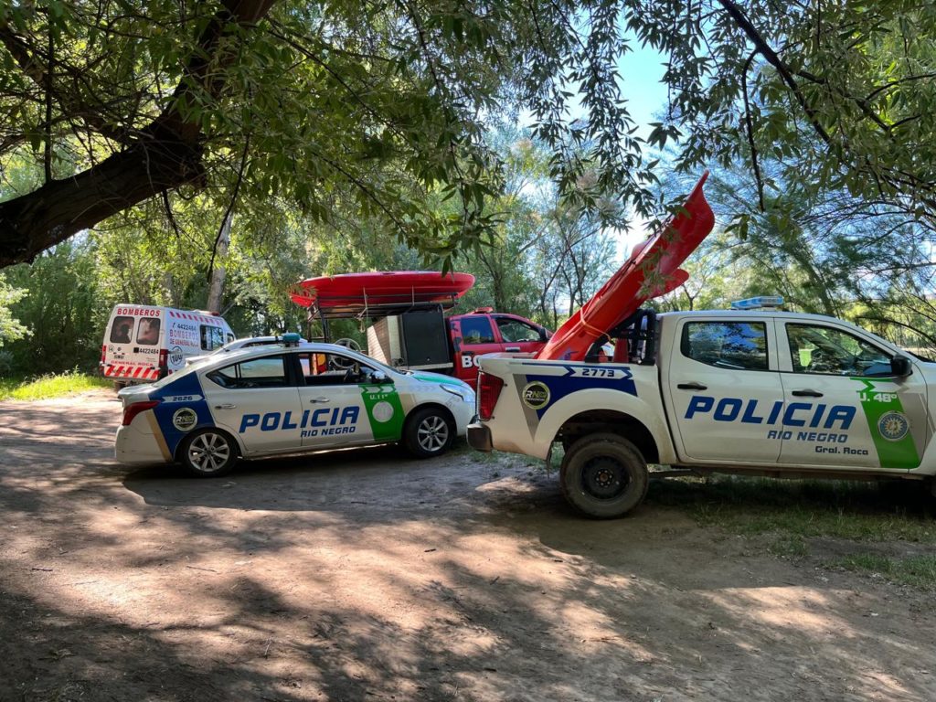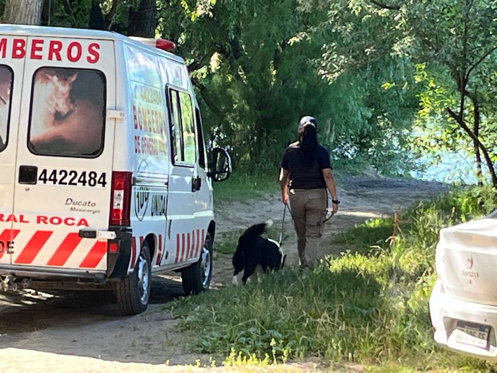 La búsqueda, que ya lleva dos días consecutivos, se desarrolla por tierra y agua. Participan perros adiestrados de la Policía de Río Negro, Bomberos Voluntarios de Allen y General Roca, y efectivos de Prefectura Naval Argentina.