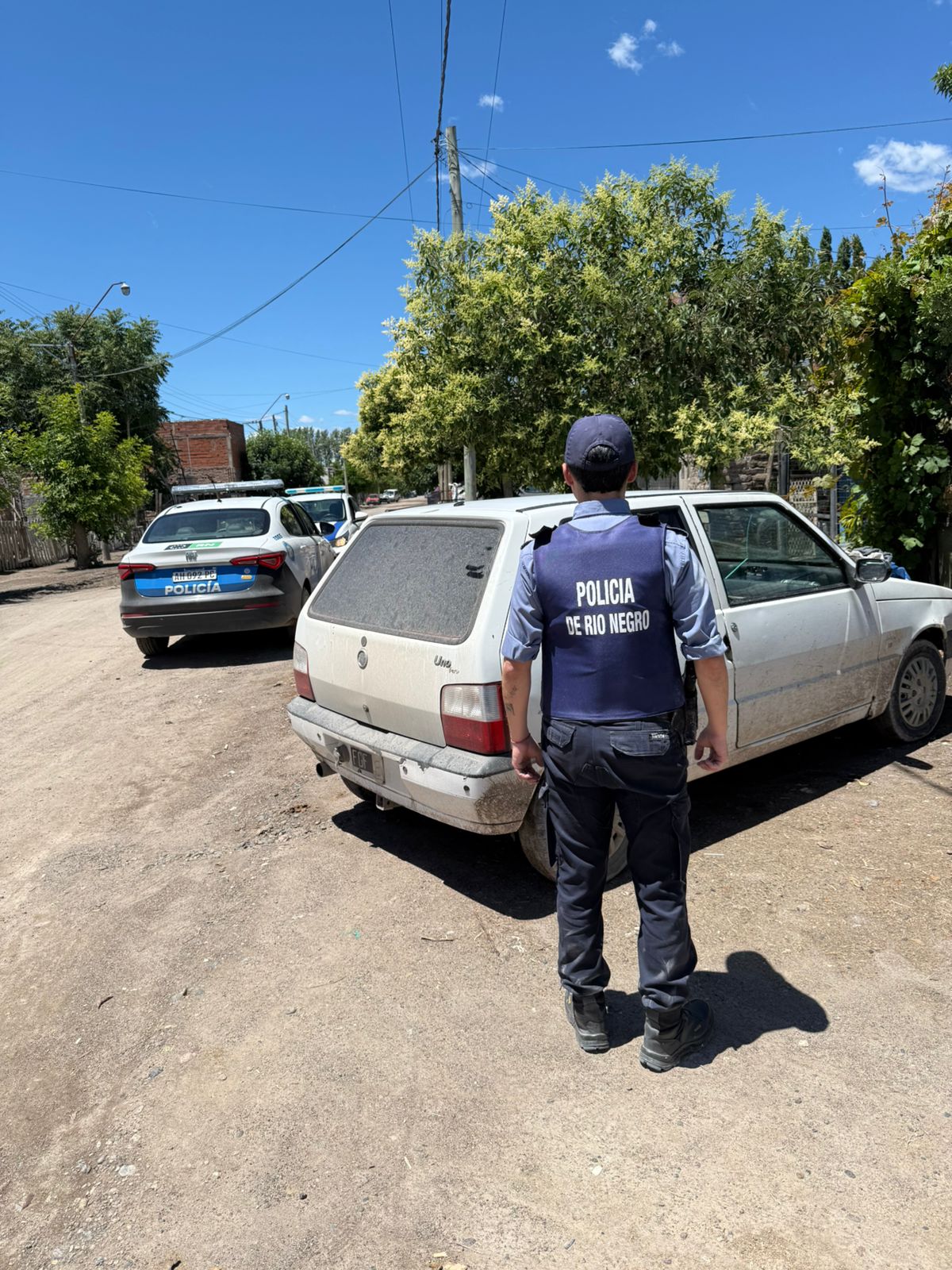 Personal de la Comisaría 5º de Villa Regina intervino tras un aviso proveniente de San Martín de los Andes, donde se informaba que en una vivienda del barrio 25 de Mayo habría un vehículo presuntamente robado y con requerimiento judicial.