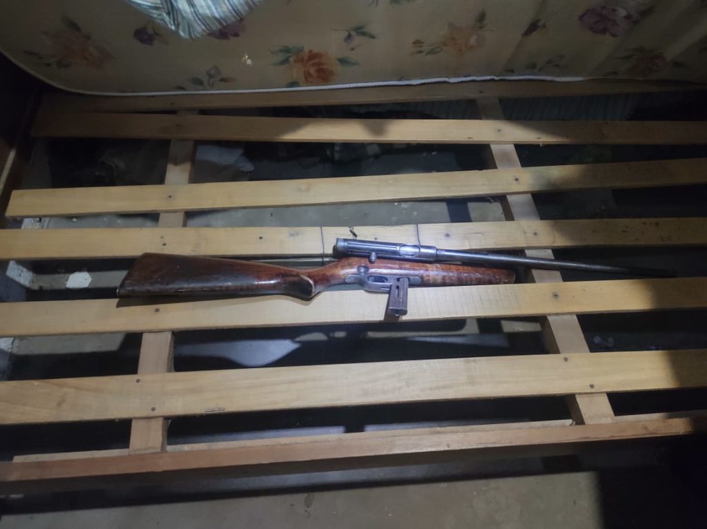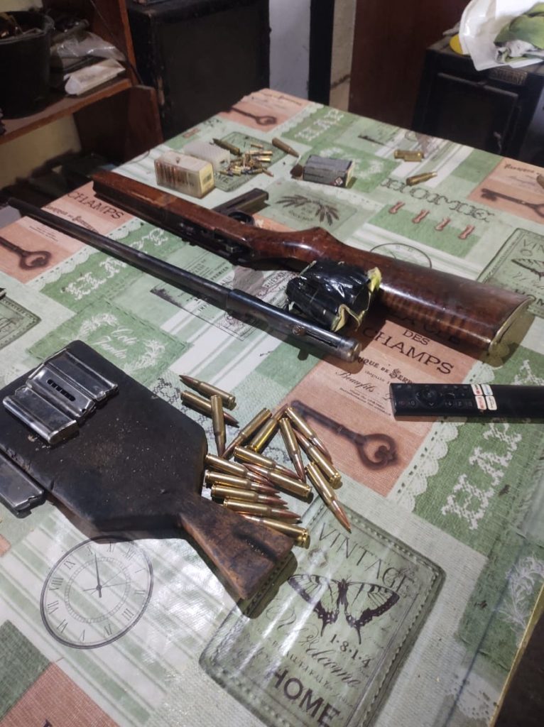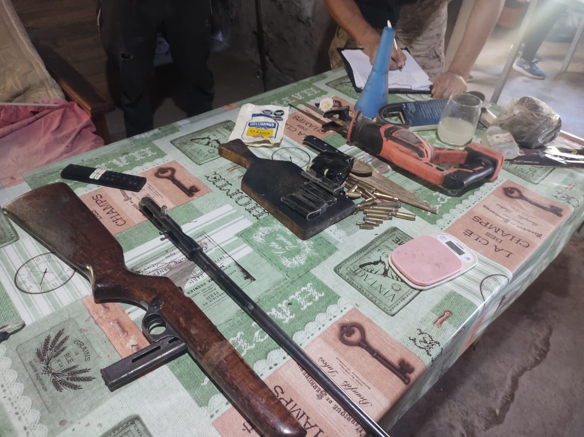 El procedimiento fue ordenado por el Juez de Garantías y se llevó a cabo durante la mañana del viernes. Como resultado, se procedió al secuestro de tres teléfonos celulares, un arma de fuego calibre 22, cinco cargadores del mismo calibre, tres cuchillos, una sierra tipo sable, más de un centenar de cartuchos de distintos calibres, además de otros elementos de interés para la causa.