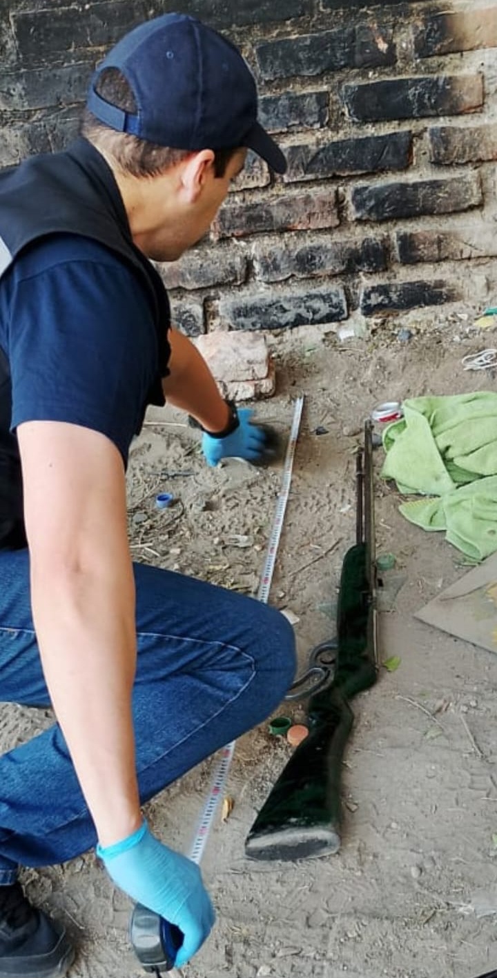 Personal del Gabinete de Criminalística trabajó en la escena y secuestró una carabina marca Saurio, calibre .22, apta para el disparo y con numeración visible. Como consecuencia del hecho, un efectivo policial resultó con lesiones.