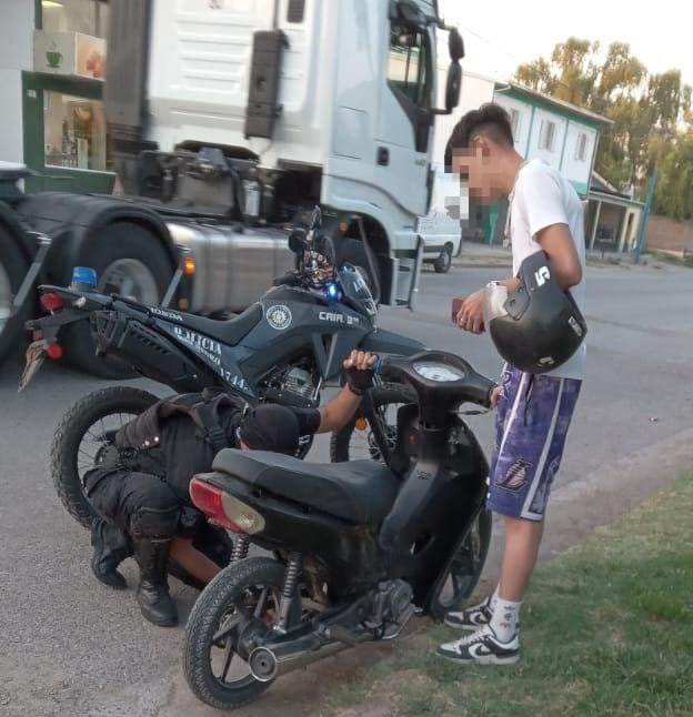 El conductor fue identificado como un joven de 22 años, domiciliado en esta ciudad, quien se desplazaba en una motocicleta Motomel 110 cc, sin chapa patente colocada. Al verificar los datos del rodado a través del sistema del 911, se constató que el vehículo poseía pedido de secuestro vigente por robo, con fecha 20 de octubre de 2025, a requerimiento de la Comisaría 21° de General Roca.