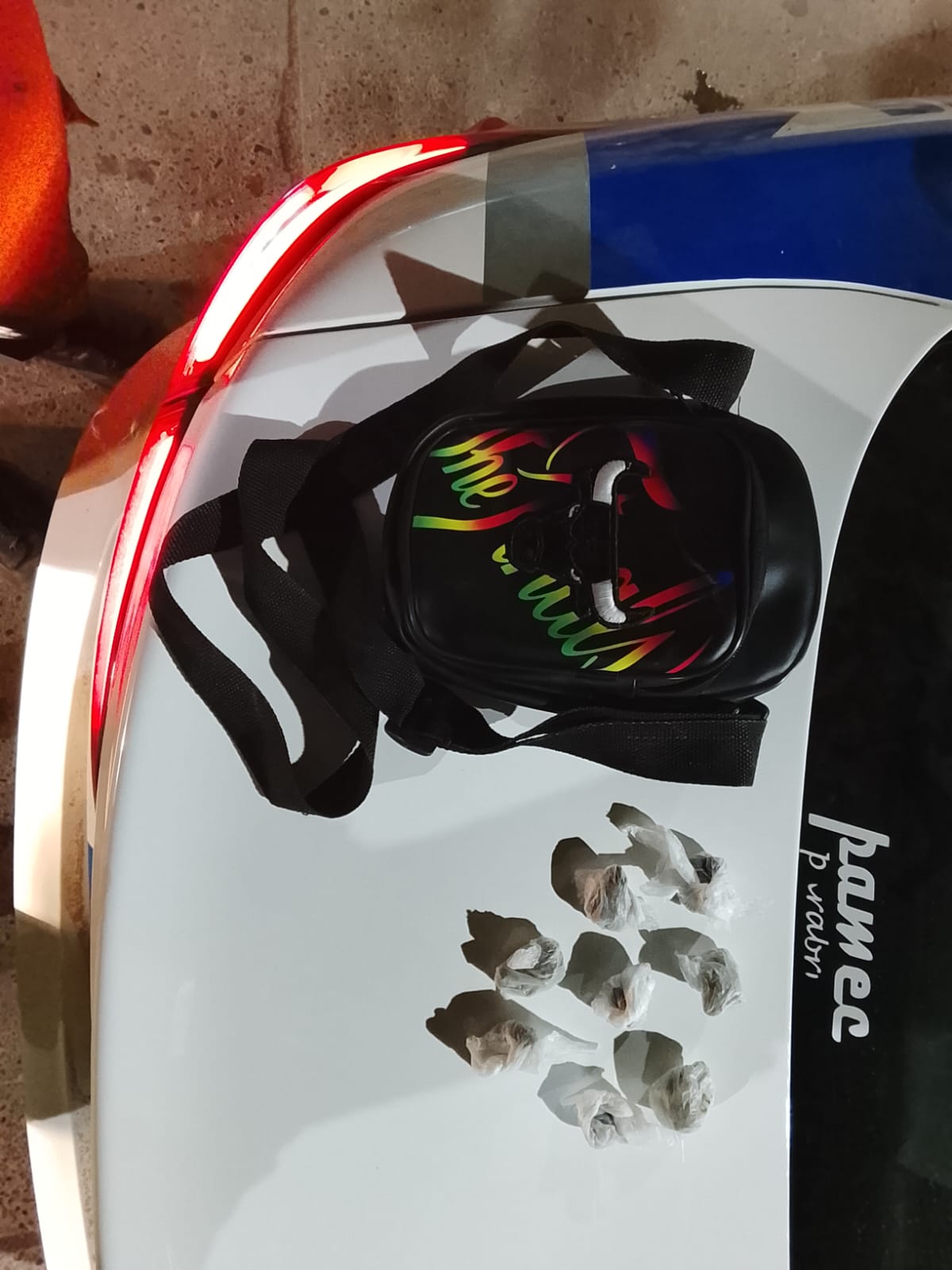 El hecho ocurrió alrededor de las 3:50 horas, cuando efectivos que patrullaban calle Naciones Unidas, entre Antonio Turrín y Esquiú, identificaron a un joven de 20 años que circulaba en bicicleta. Durante el control, los uniformados solicitaron la exhibición de un bolso que llevaba consigo, y hallaron varios envoltorios con una sustancia vegetal similar a cannabis.